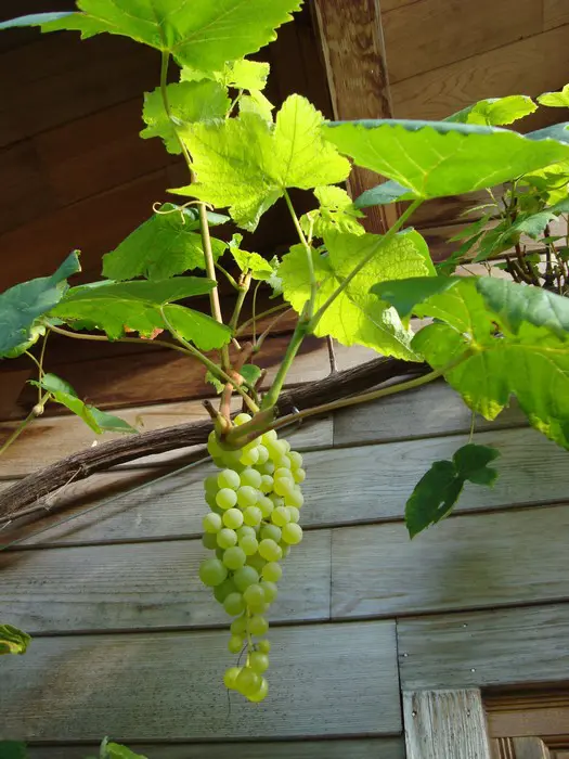 Vitis vinifera 'Himrod' is een pitloze witte tafeldruif met zoet smakend groengeel vruchtvlees.