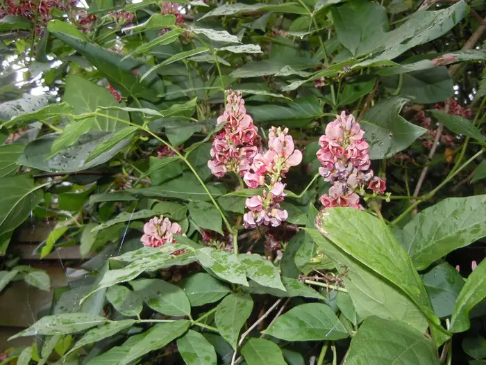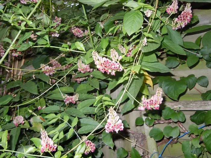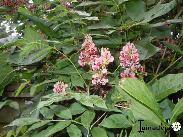 Er is wel overeenstemming over de schoonheid van de bloemen. Wanneer Apios bloeit, blijft iedereen er bij stil staan. Bruinrood, oudroze met een vleugje geel zijn de talrijke trosjes, verspreid over de plant.