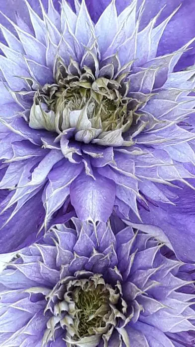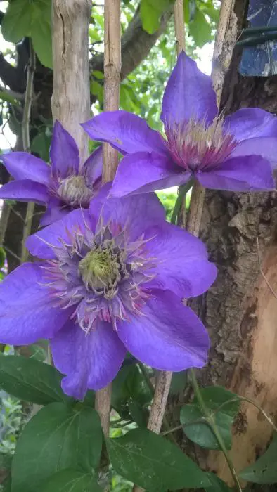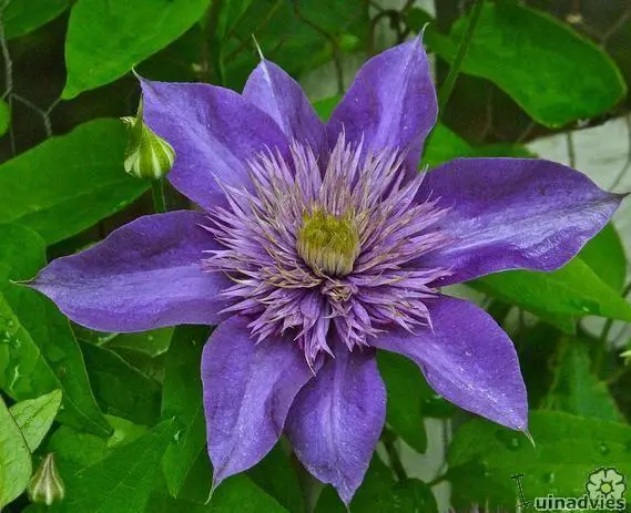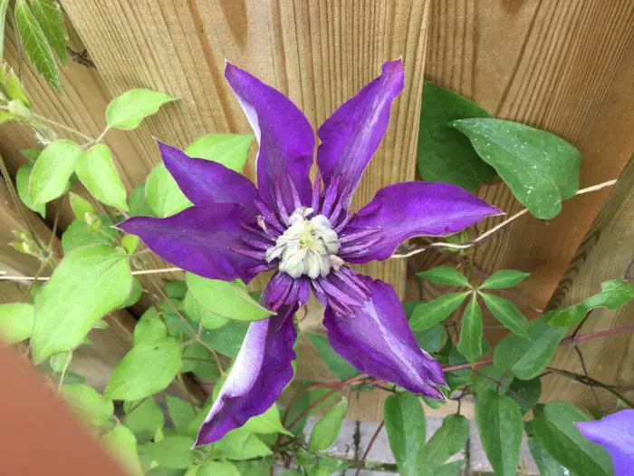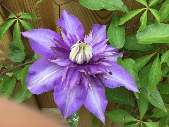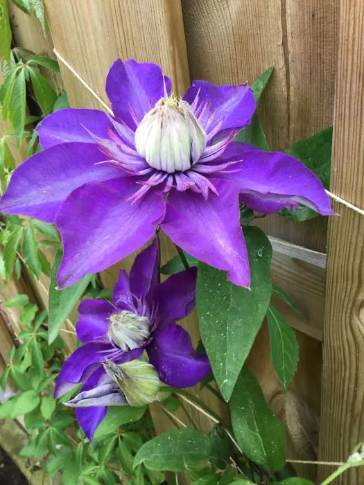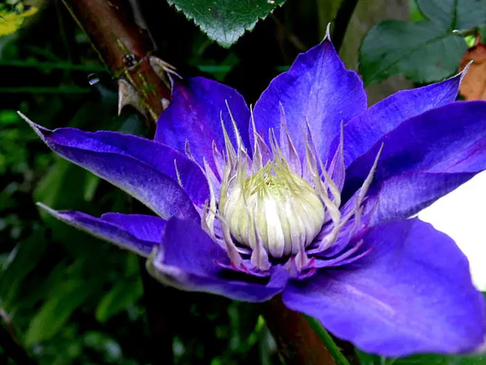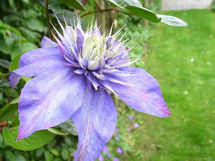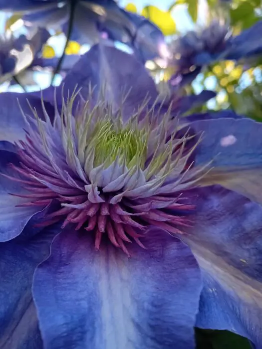 Clematis 'Multi Blue' bloeit aanvankelijk lilablauw en wordt dan donkerder naar violetblauw.