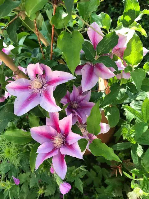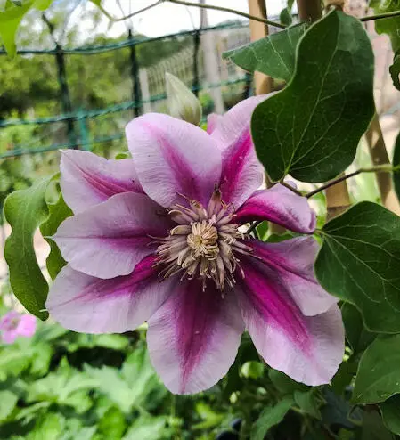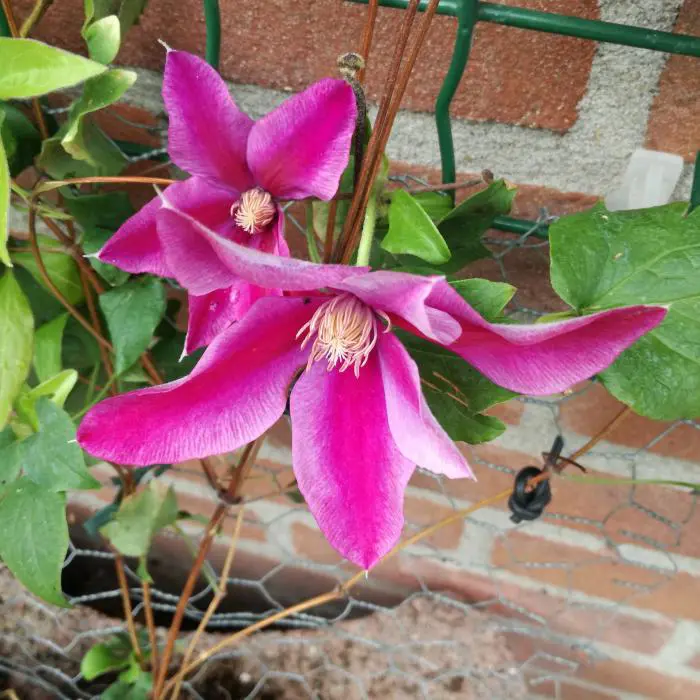 Clematis 'Poseidon' is een grootbloemige clematis uit de Boulevard reeks van Evison, groeit compacter dan de meeste Clematissen.