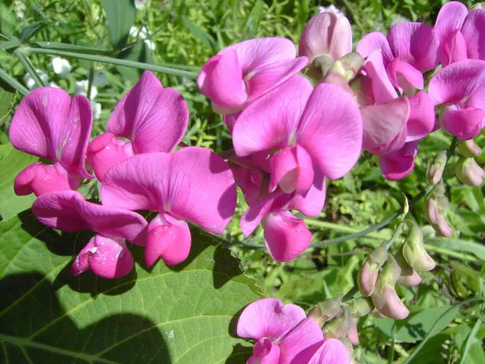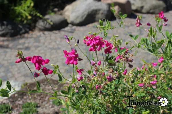 Het is een wilde plant bloeiend met trossen helderroze bloemen.