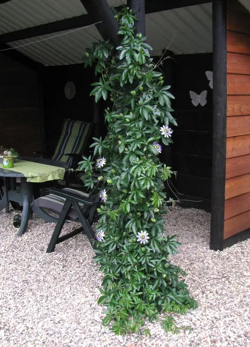 Passiflora zijn klimplanten. Met hun hechtranken kunnen ze zich rond alles wentelen. Daarom plant je ze best beschut tegen een zonnige warme muur of schutting uit de wind. Omdat ze in de vrije natuur bomen en andere planten als steun gebruiken, hebben ze geen stevige stam. Toch kunnen ze in één zomerseizoen tot 6 meter groeien. Als je met tuindraad, gaas of ander klimmateriaal werkt, kunnen de planten zich gemakkelijk vasthechten. Laat ze echter zelf hun weg zoeken.