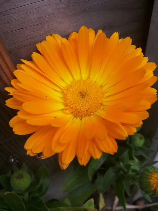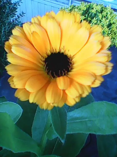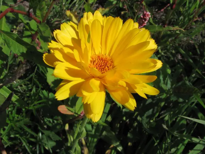 De 40 tot 50 cm hoge goudsbloem is licht behaard en de stengels vertakken zich.(stengel is hoekig gevormd).