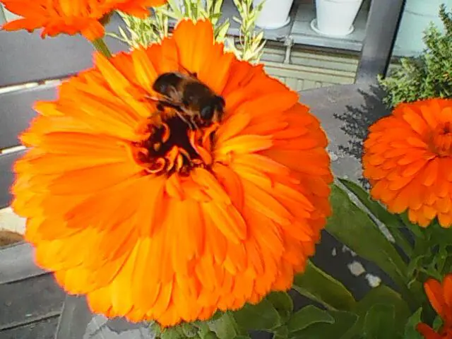 De goudsbloemen (koppen) worden soms al eens gebruikt om mierenop afstand te houden.Ze bevatten een stof die pyrethrum heet. Pyrethrum is het natuurlijke pyrethrine die men in vele insecticides terug kan vinden. Wanneer we goudsbloemen, margrieten (Chrysanthemum coccineum)of het moederkruid (Tanacetum parthenium) in de tuin aanplanten weren we automatisch ook de bijen. Dit kan interessant zijn voor mensen die allergisch zijn voor bijensteken. Vliegen, vlooien, kakkerlakken en kevers zijn minder gevoelig voor dit natuurlijke zenuwgif.