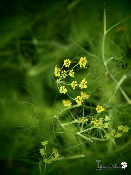 Uit de knol groeien krachtige loten met mooi fijn gevederd blad en gele schermbloemen waardoor men ook spreekt van knolvenkel.