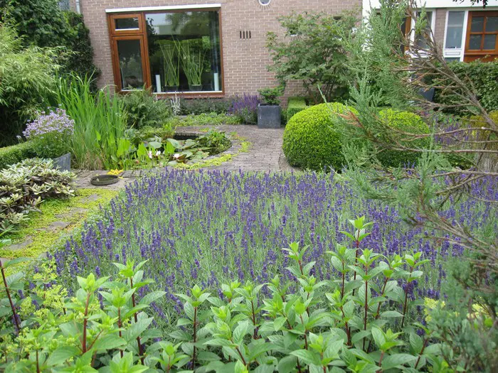 Lavandula angustifolia 'Hidcote' is een halfheester die heel veel gebruikt worden in de tuinen om plantvakken mee op te vullen. Ze zijn mooi grijsbladig met een roze bloei en staan graag op een zonnige standplaats die in de winter niet te nat is. Deze soort bloeit ook veel langer tot in september.