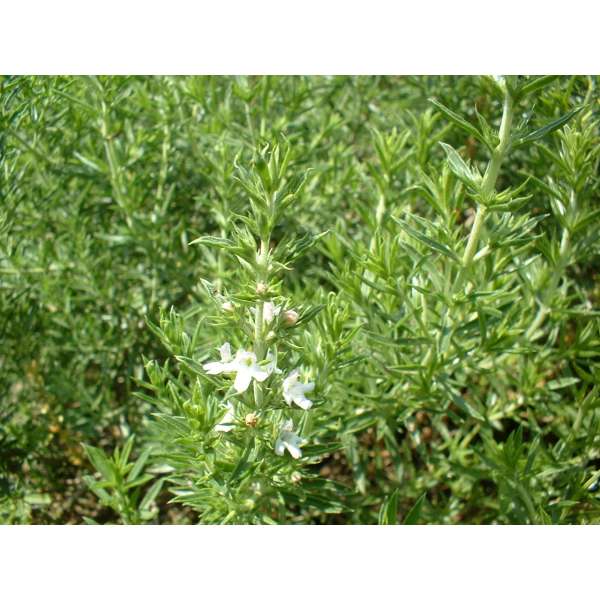 Bonenkruid wordt tot 50cm hoog en bloeit met rozewitte bloempjes in juli/augustus.