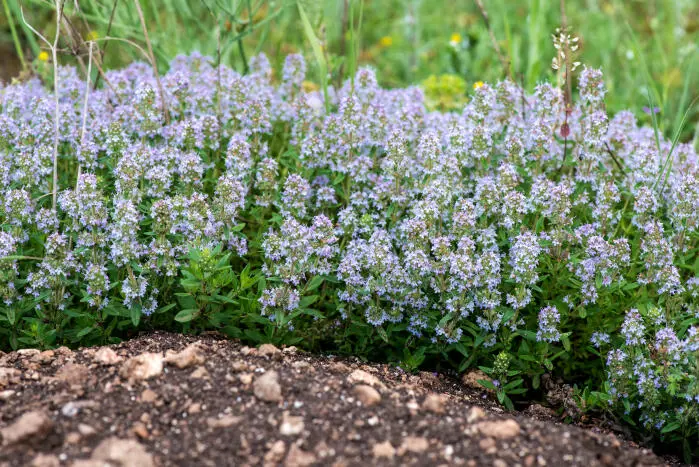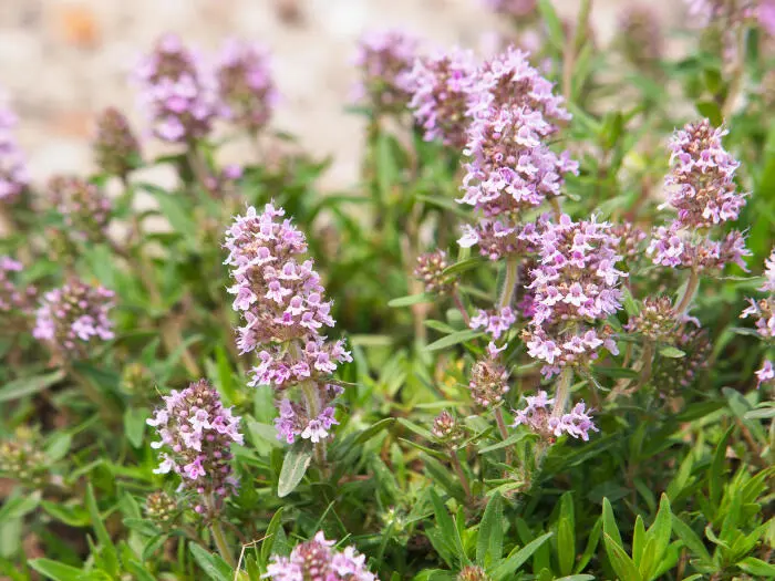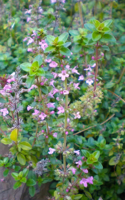 Echte tijm bloeit met lila of roze, soms witte bloemen