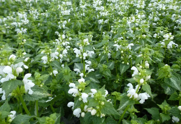 Lamium orvala 'Album' bloeit in het voorjaar met witte bloemen maar blijft ook daarna decoratief.