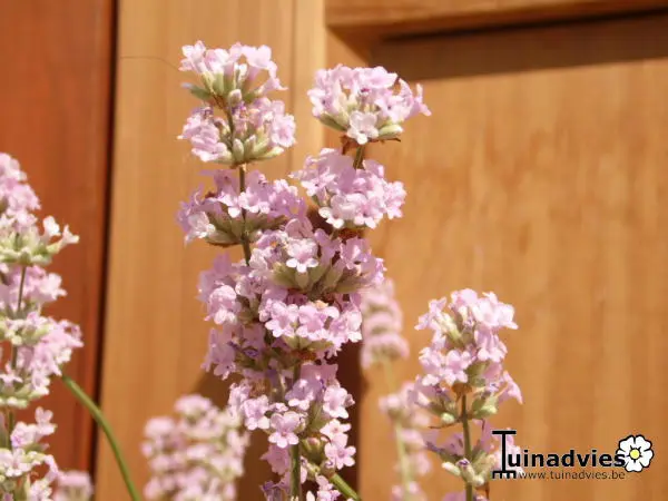 Lavandula angustifolia 'Felice Pink' bloeit vroeger. De roze aren zijn boller maar groter en geuren sterker.