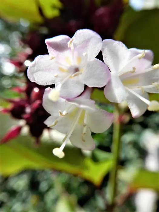 Deze variëteit bloeit later in de zomer, van augustus tot eind oktober komen de witte bloemen met prachtige roodpaarse schutbladeren, gevolgd in het najaar van robijnrode tot paarsrode bessen die fel begeert zijn door de vogels vooral fazanten. De bessen geuren naar chocolade.