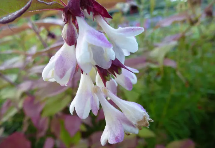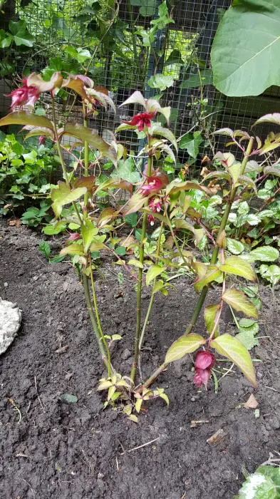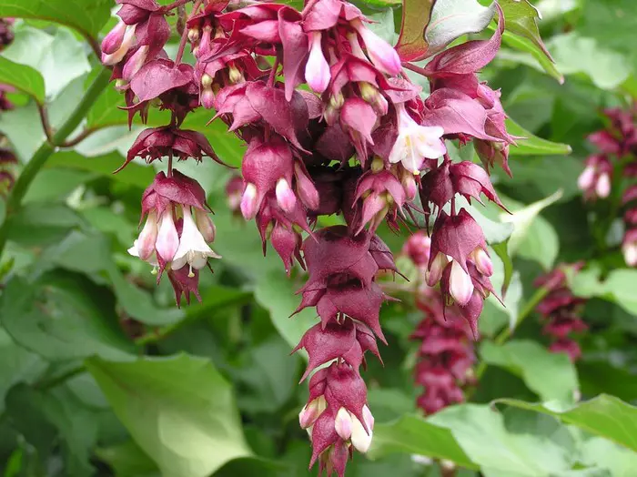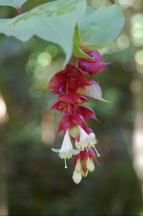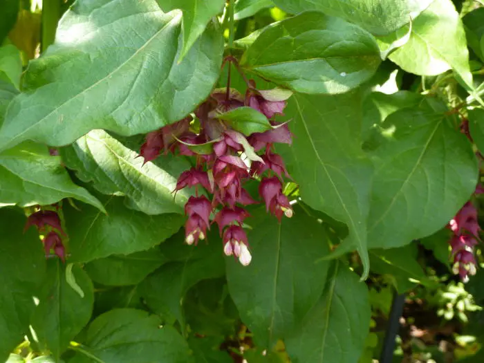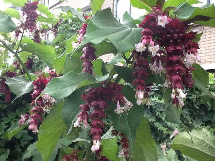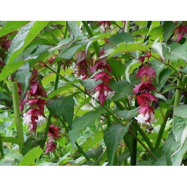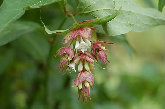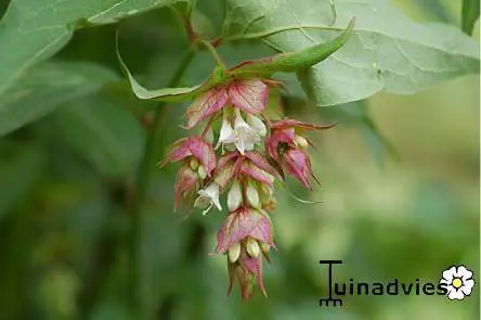 Van juni tot september komen de witte bloemen met prachtige roodpaarse schutbladeren, en van september tot november verschijnen de rode tot zwarte bessen die fel begeert zijn door de vogels vooral fazanten. De bessen geuren naar chocolade.
