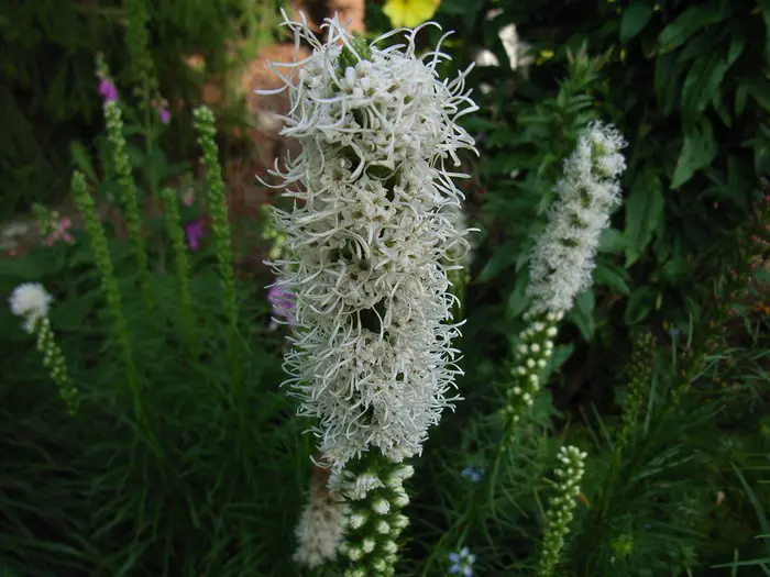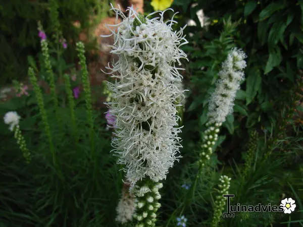 Liatris spicata 'Floristan Weiss' zijn mooie stevige planten voor in de border, vooral in grote groepen komen ze goed tot hun recht.