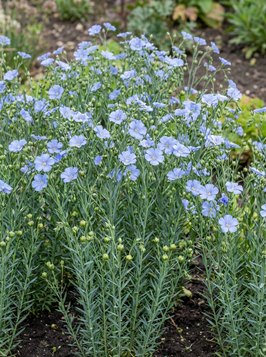 Linum perenne is inheems in Europa, voornamelijk in de Alpen en lokaal in Engeland.Het is een sterke plant met rechtopstaande, dicht bebladerde stengels. De bladeren zijn smal lancetvormig.Lichtblauwe bloemen staan in dichte trossen.