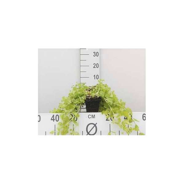 Lysimachia nummularia 'Aurea' is een kruipende vaste plant met kleine hartvormige, goudgele bladeren.