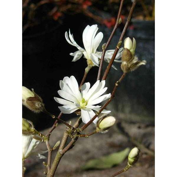 Magnolia stellata is een compacte, breed ronde heester met lancetvormige groene bladeren en een rijke bloei van zijdeachtige knoppen die zich openen tot stervormige, licht geurige, witte bloemen.