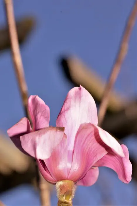 Magnolia 'Vulcan' is een kleine boom/struik met een rechte smalle groeiwijze. Oudere planten krijgen een meer ronde vorm.