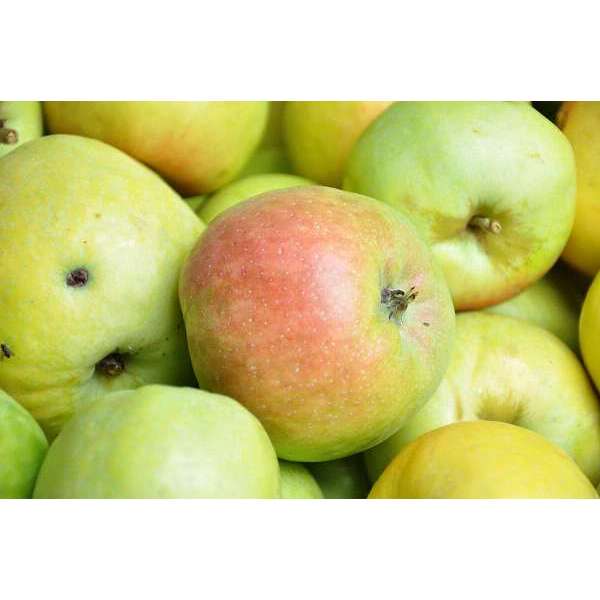 Het zijn middelmatig grote appels, groenwit tot geelgroen van kleur met een wit vruchtvlees. Sappig en zoet met iets zurig.