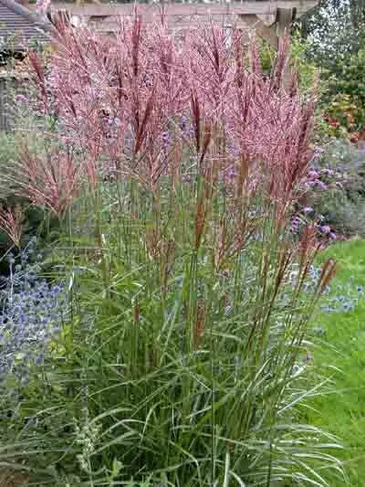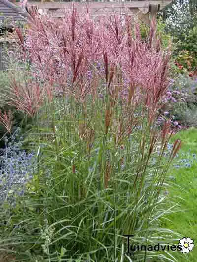 Miscanthus sinensis 'Nippon' vormt sierlijke pollen met in de herfst bronsrode/bruine pluimen.
