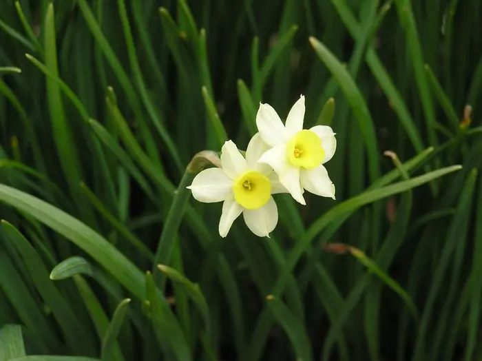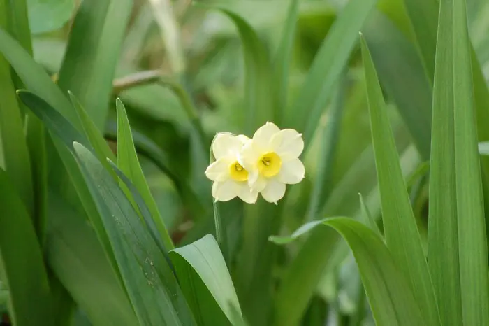 Het blad is smaller en meer grasachtig dan de andere narcissen.