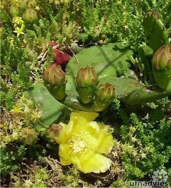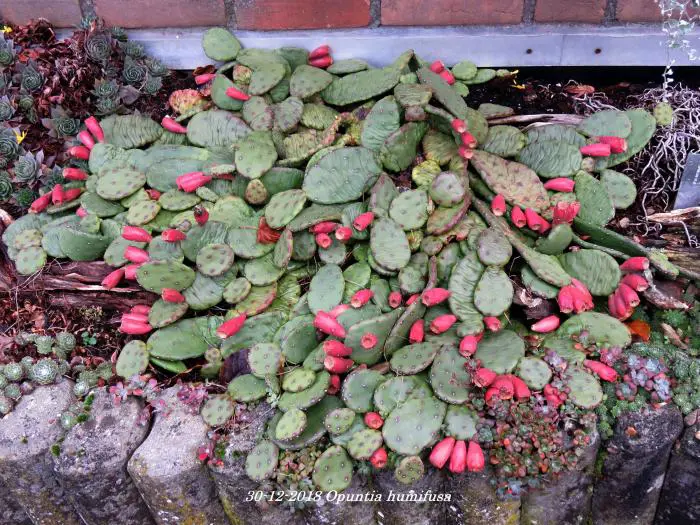 De groene schijven zijn bezet met irritante harige stekels (glochiden).