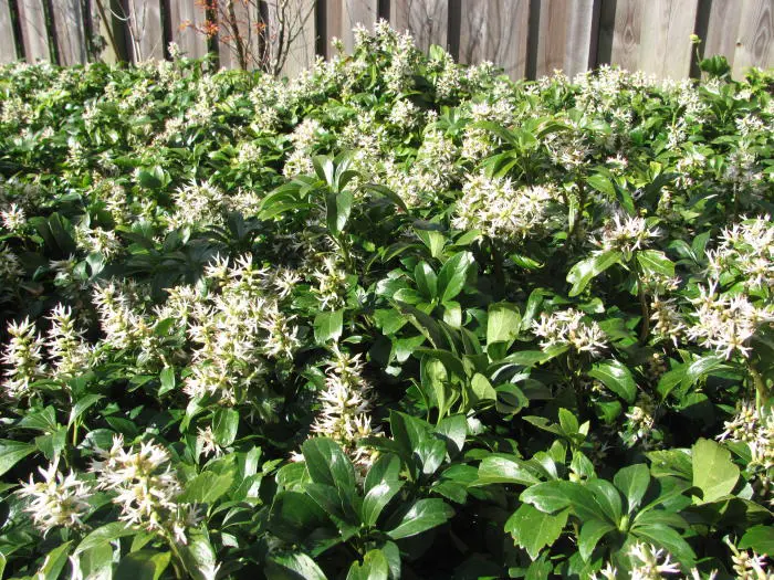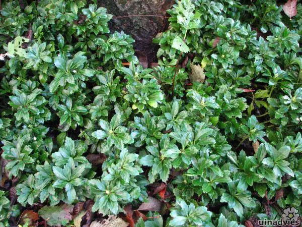 Pachysandra terminalis is een bodembedekkende halfheester met een prachtig, glanzend donkergroen blad, wintergroen en 5 tot 10 cm lang, ovaal en aan de uiteinden getand. Het blad wordt gelig in de zon.