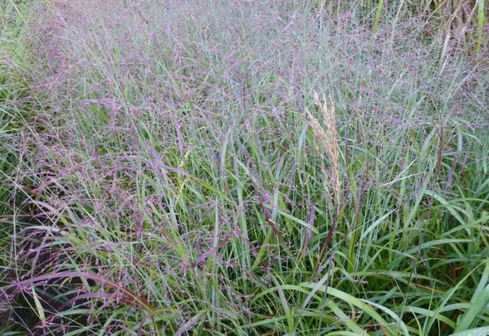 De bloei gebeurt in de nazomer met geurende rozig/lichtbruine bloempluimpjes die amper boven het blad uit steken.