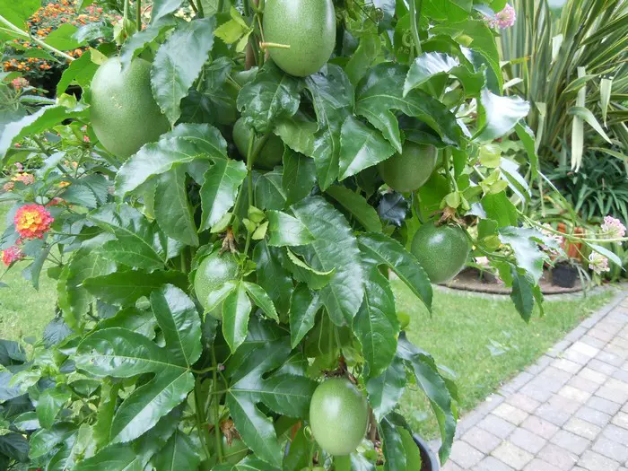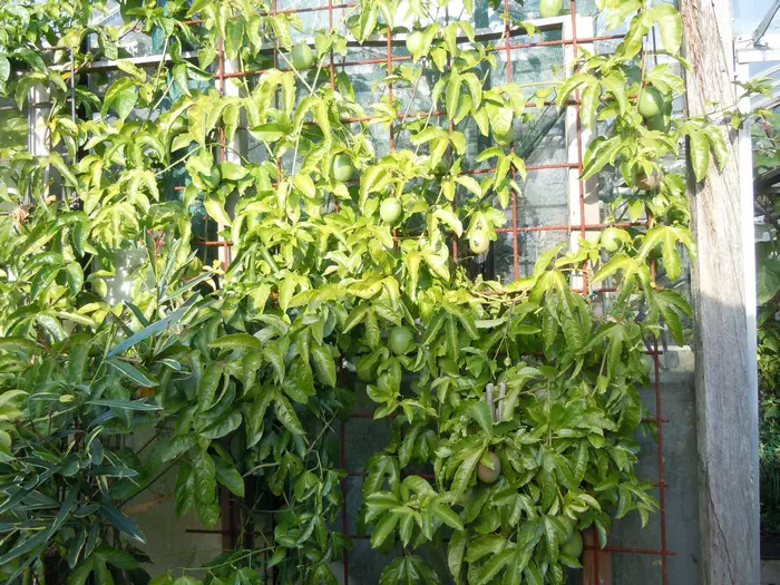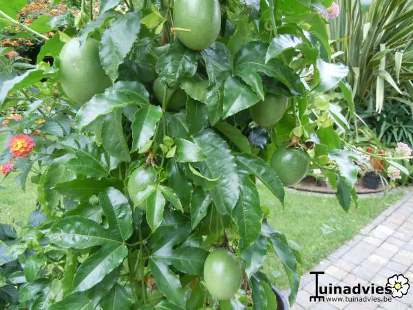 Passiflora edulis zijn klimplanten. Met hun hechtranken kunnen ze zich rond alles wentelen. Daarom plant je ze best beschut tegen een zonnige muur of schutting uit de wind. Omdat ze in de vrije natuur bomen en andere planten als steun gebruiken, hebben ze geen stevige stam. Toch kunnen ze in één zomerseizoen tot 6 meter groeien. Als je met tuindraad, gaas of ander klimmateriaal werkt, kunnen de planten zich gemakkelijk vasthechten. Laat ze echter zelf hun weg zoeken.