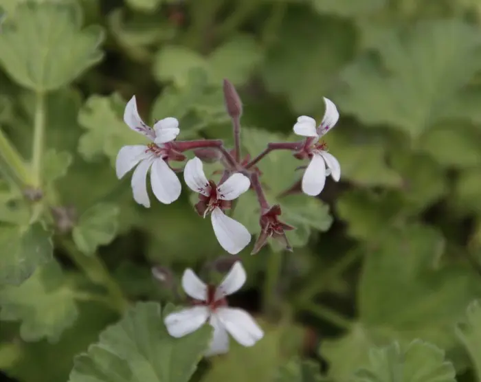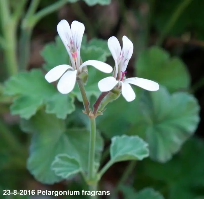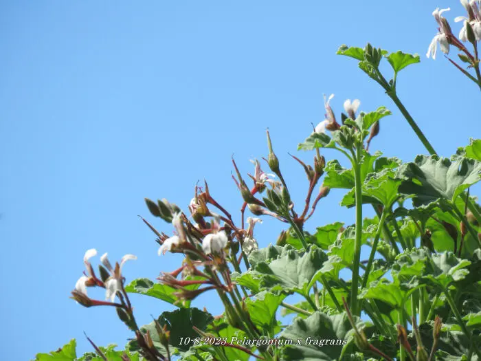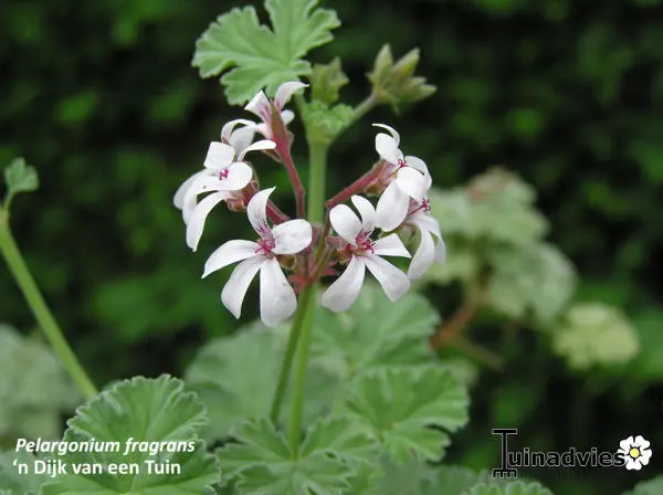 Het blad van de Pelargonium x fragrans heeft een kruidige geur van nootmuskaat, kruidnagel en citroen. De geur komt vooral vrij wanneer je het tussen je vingers kneust.