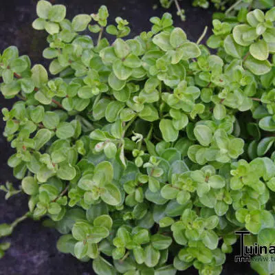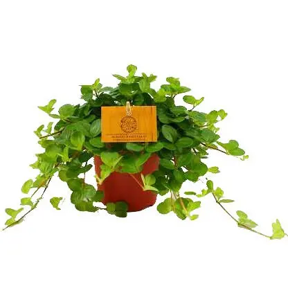 Peperomia rotundifolia afkomstig uit Zuid-Amerika vormt lange stengels met kleine groene blaadjes, ideaal dus voor hangpotten.
