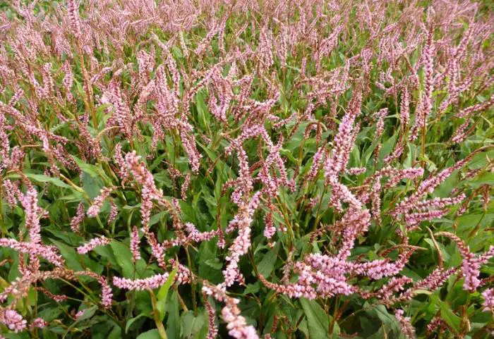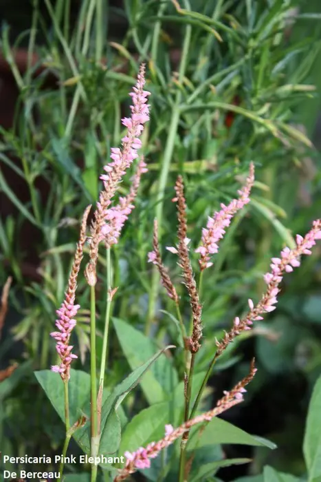 Persicaria amplexicaulis 'Pink Elephant' heeft helroze, golvende aren die op olifantenslurfjes lijken.