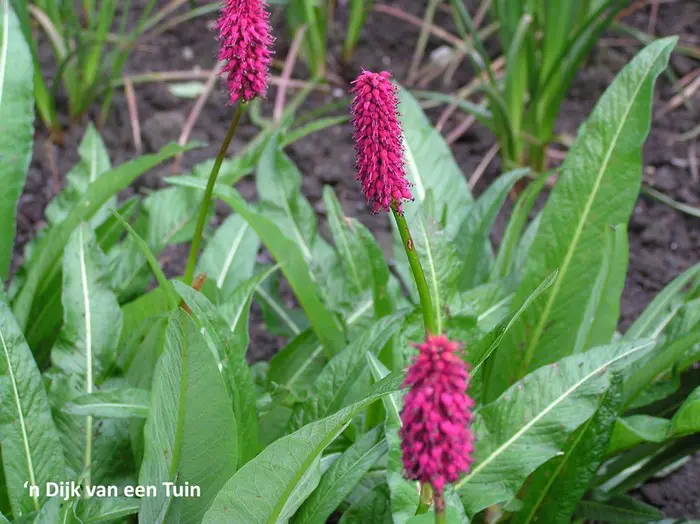 Persicaria milletii is een zodevormende rotsplant met lancetvormige, puntige donkergroene blaadjes en korte karmijnrode bloemaren.