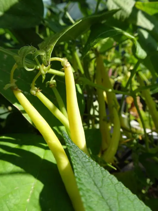 Phaseolus vulgaris 'Valdor' produceren fijne gele wasbonen (12/14cm).
