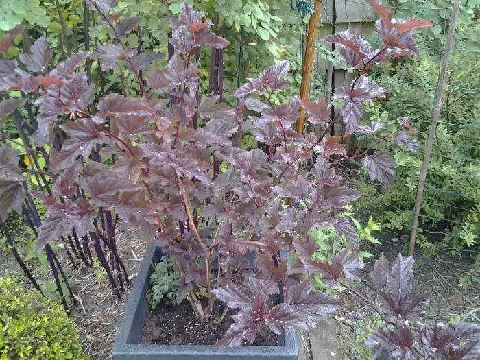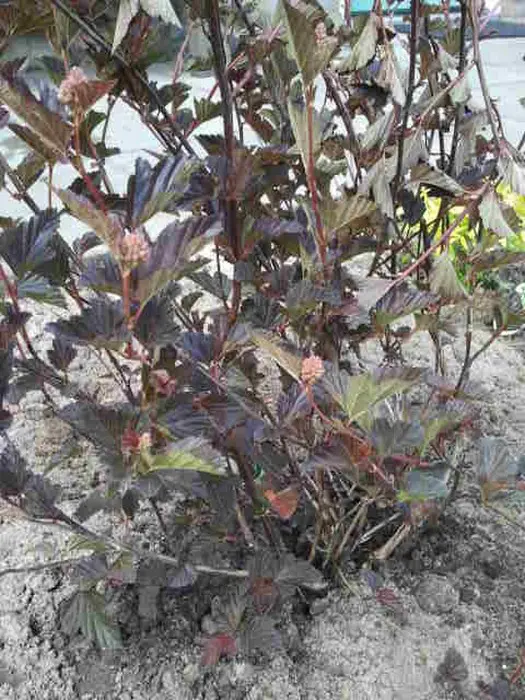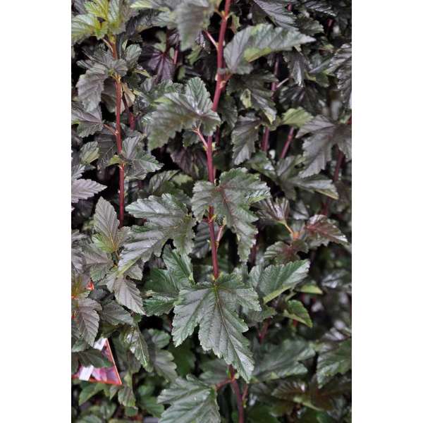 Physocarpus opulifolius 'Red Baron' is een compacte heester met een opgaande en vaasvormige groeiwijze en gelobde, sterk generfde, diep wijnrode, bijna zwarte bladeren