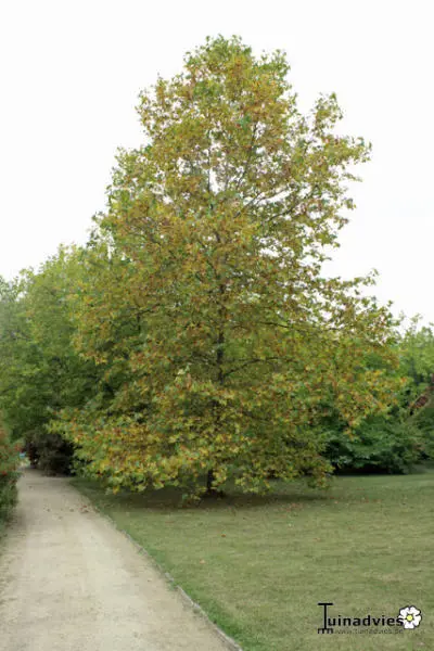 Platanus occidentalis heeft een ronde halfopen kroon.