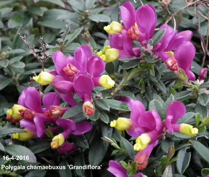 Polygala chamaebuxus 'Grandiflora' komt oorspronkelijk uit de Alpen (Savoie, Dauphiné, Provence), de oostelijke Pyreneeën (Ceret) en Centraal-Europa.
