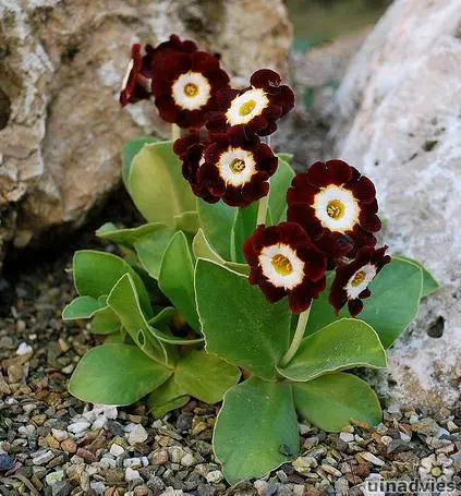Primula auricula is oorspronkelijk een alpineplantje met zacht donsachtige blaadjes en bloempjes in diverse kleuren van roze, geel, blauw, rood, wit....
