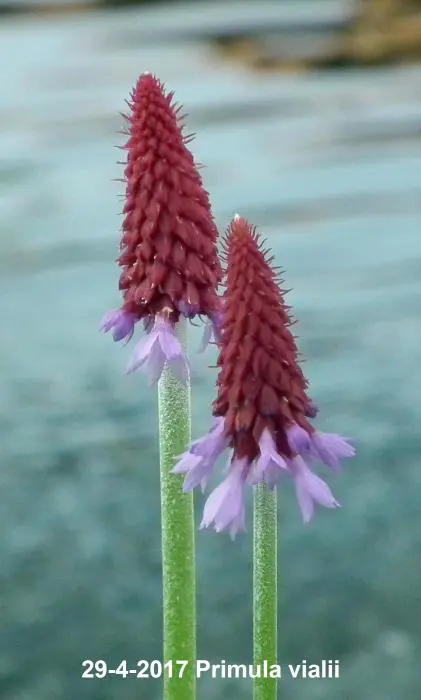 Primula vialii is een vaste plant uit Yunnan (China) en moeilijk te houden is in ons klimaat. Wordt dan ook als een tweejarige gezien.