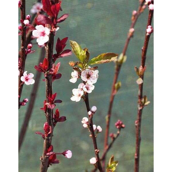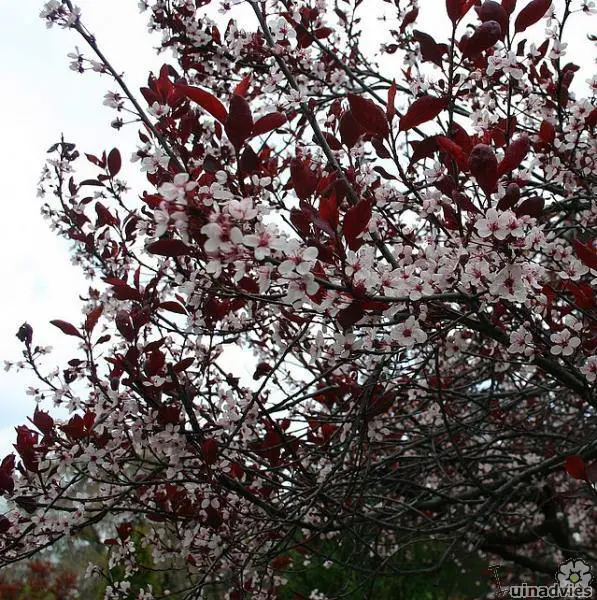 Sierpruim met witroze bloei in april mei en purperrood blad.