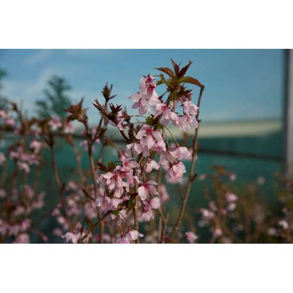 Prunus nipponica 'Ruby' is een laagblijvende sierkers, bloeit in het vroege voorjaar met kleine donkerroze bloemen.