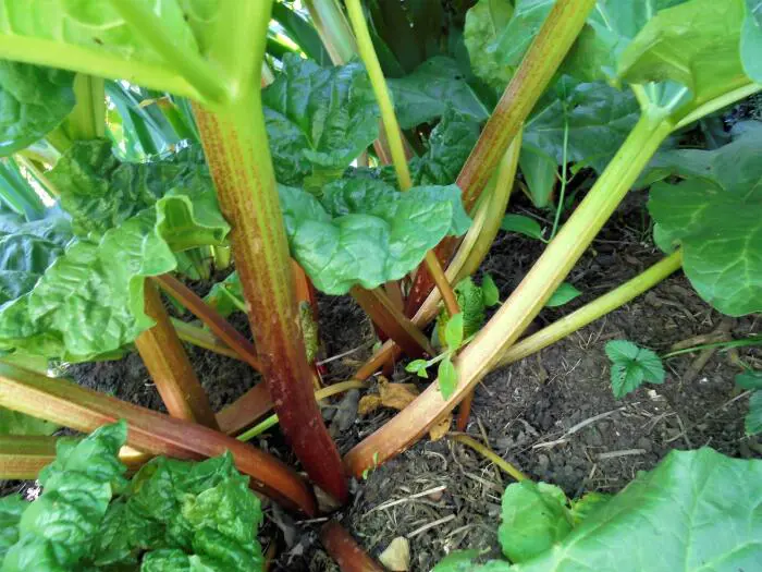 De rassen met rode stelen hebben een lagere opbrengst, smaken minder zuur en zijn dan ook een stuk zoeter (smakelijker).
