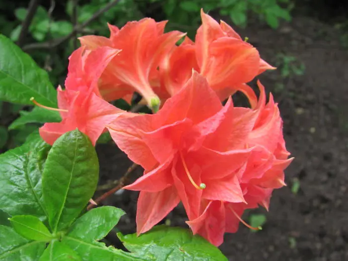 Rhododendron 'Norma' (Rustica hybride) is een dubbelbloemige koraal/abrikoosroze gentse azalea.