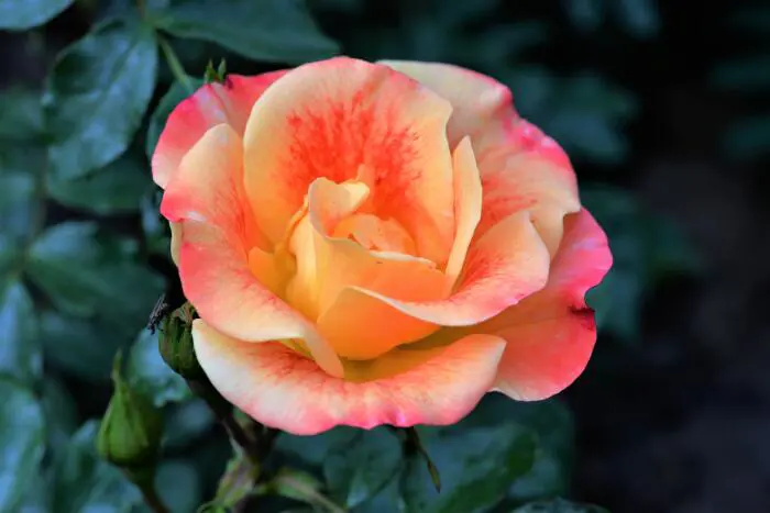 Rosa 'Airbrush' is een gestreepte roos, abrikoos/rood met geel in het centrum. Verbloeien tot oranjerood.De bloemen zijn semi dubbel en geurloos.