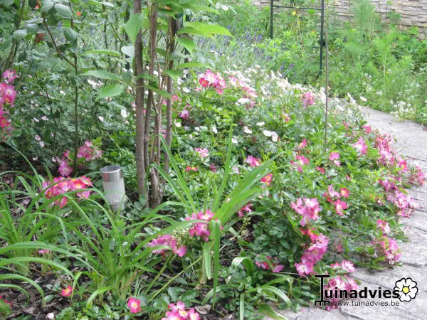 Een doorbloeiende bodembedekkende roos van Lens (B 2003)