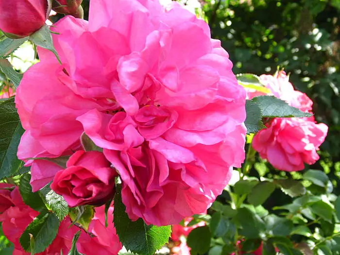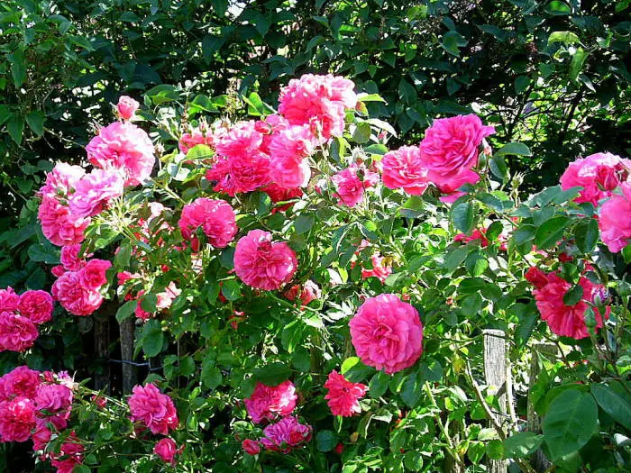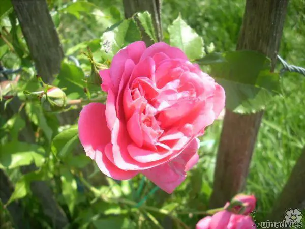 Rosa 'Rosarium Uetersen' is een herbloeiende roos met zachtgeurende felroze bloemen. Bloeit soms al vanaf mei.
