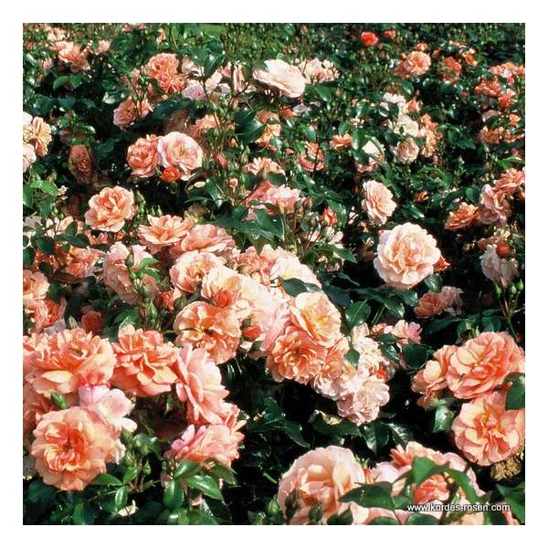 Rosa 'Aprikola' is een goed gevulde Rigoroos met abrikoosgele rozen die later naar meer roze verkleuren.