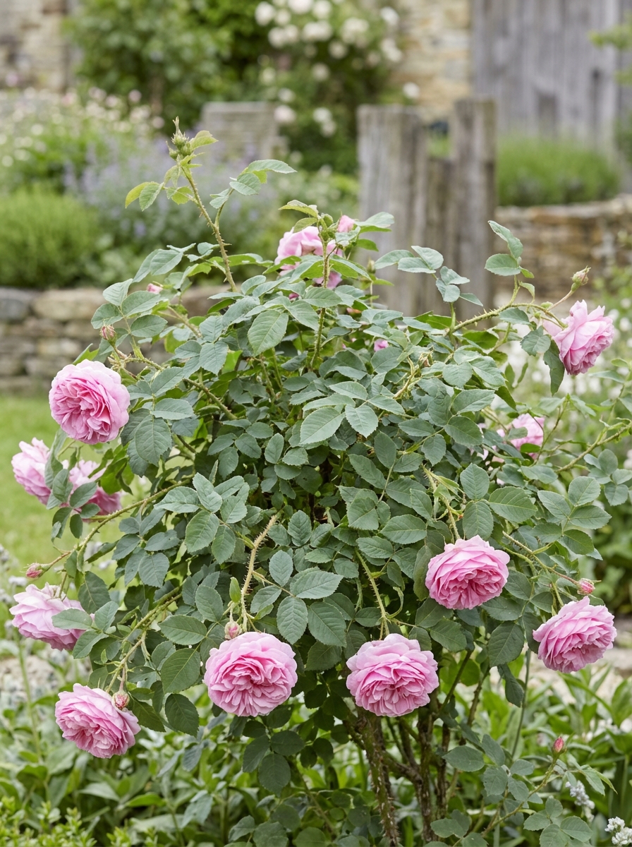 Rosa x centifolia' is een sterk geurende mosroos van voor 1318 met grote, goed gevulde komvormige roze bloemen. Heeft een licht overhangende groeiwijze.