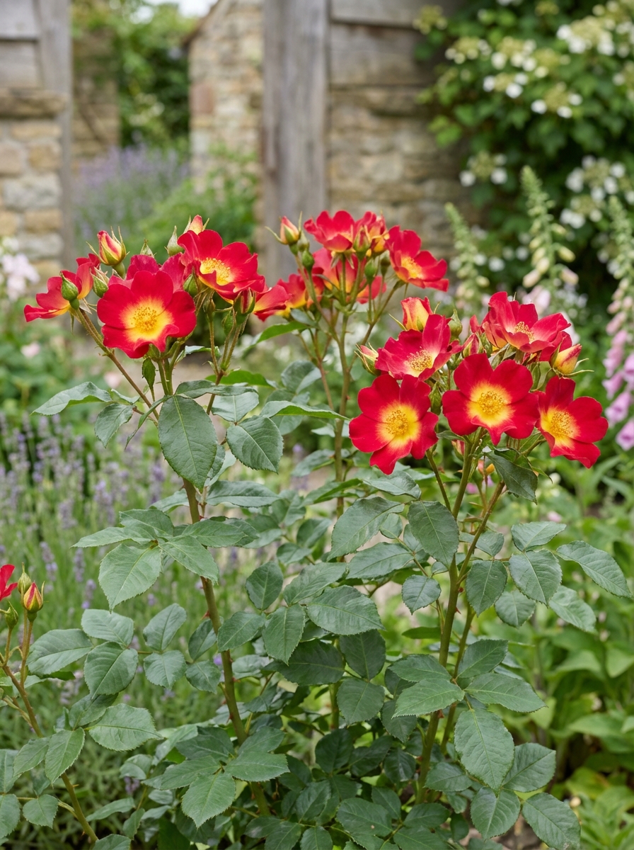 Rosa 'Summer of Love' is een goed herbloeiende roos met enkelvoudige tot semidubbele bloemen. De bloemen zijn geel met brede kersenrode randen.