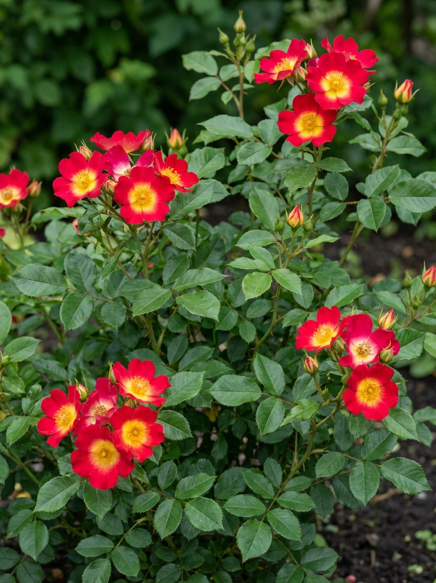 Vormt een bossige opgaande struik met zeer gezonde, glanzend donkergroene bladeren.