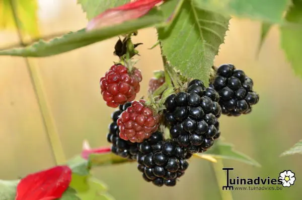 Een braambesstruik met grote vruchten en doornloos .